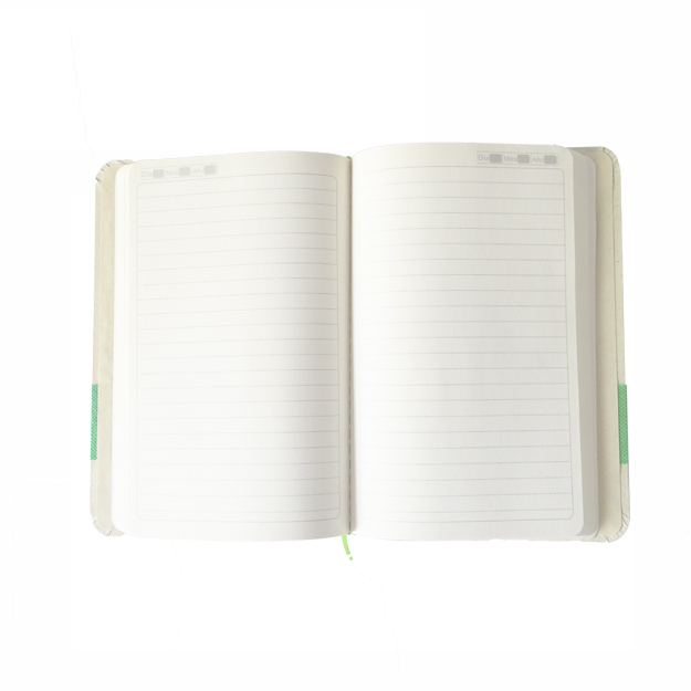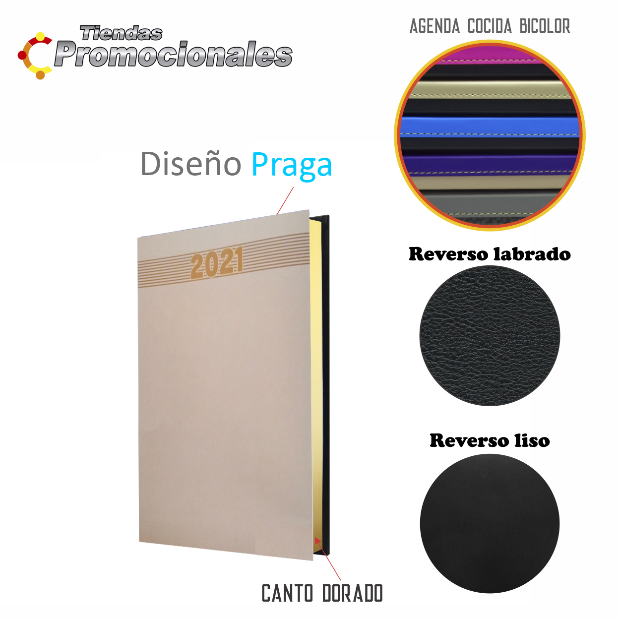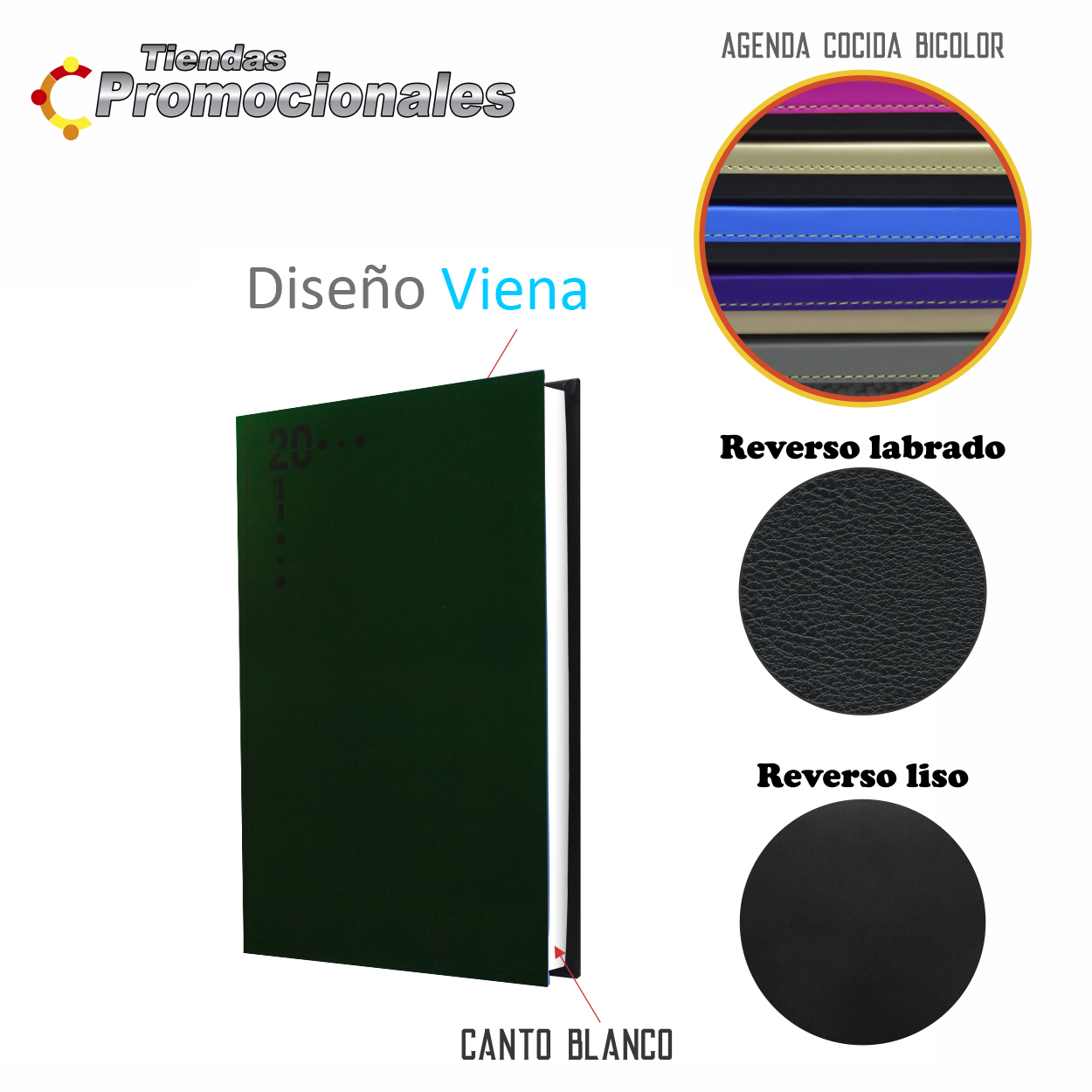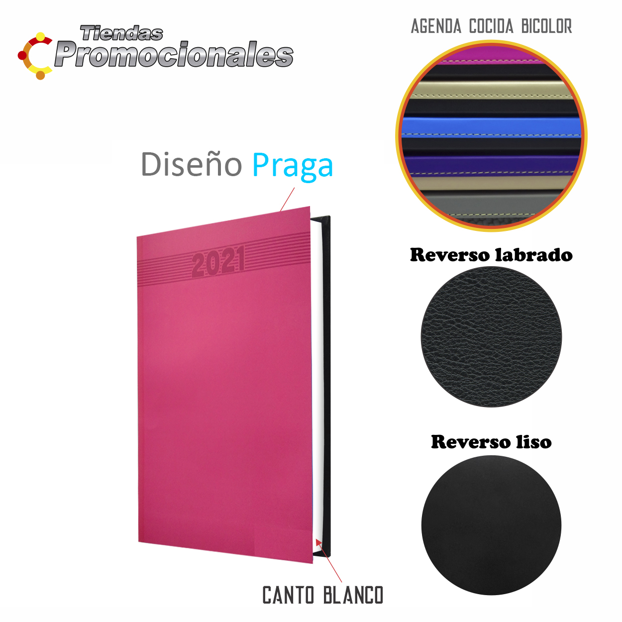 Tapa: Cosido a la mitad del lomo. Frontal en material PU (ideal para estampados y repujes personalizados); reverso en PVC (colores similares al frontal)